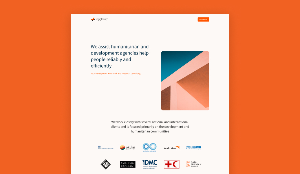 Togglecorp is a software development company that aids humanitarian organizations.