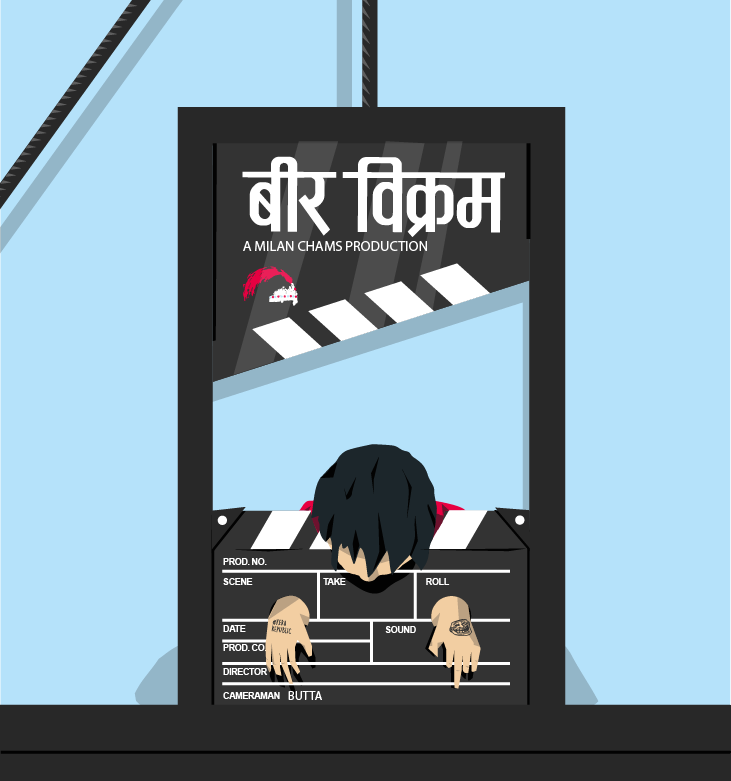 Artwork to protest against unlawful detainment of standup comedian, Pranesh Gautam, by police for satirical review of a movie "Bir Bikram"